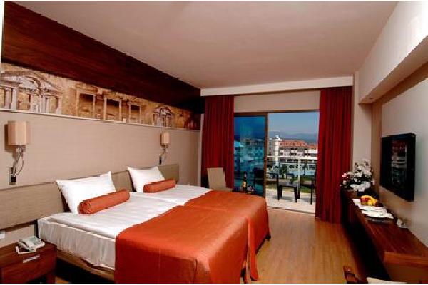 Hier is het alleen maar relaxen, Verblijf in een luxe kamer, Elke dag weer heerlijk eten, Zo met de dolmus in Side, Iedereen welkom vanaf 18 jaar, Zelfs op je strandbedje bediend