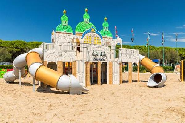Zwembad met piratenboot, Waterglijbanen en watersproeiers, Direct gelegen aan het strand, Strand loopt geleidelijk af, Dagje uit naar Venetië, Leef je uit bij de kinderdisco